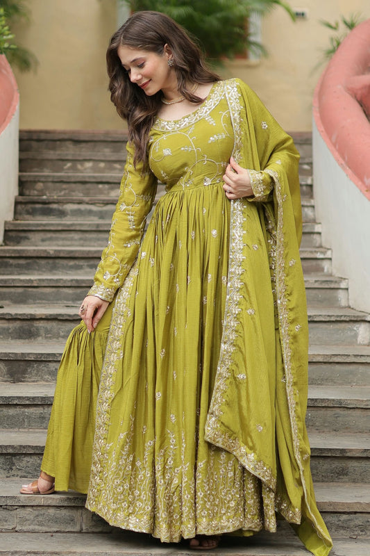 Light Green Colour Chinon Stitched Gown VSGW1112319