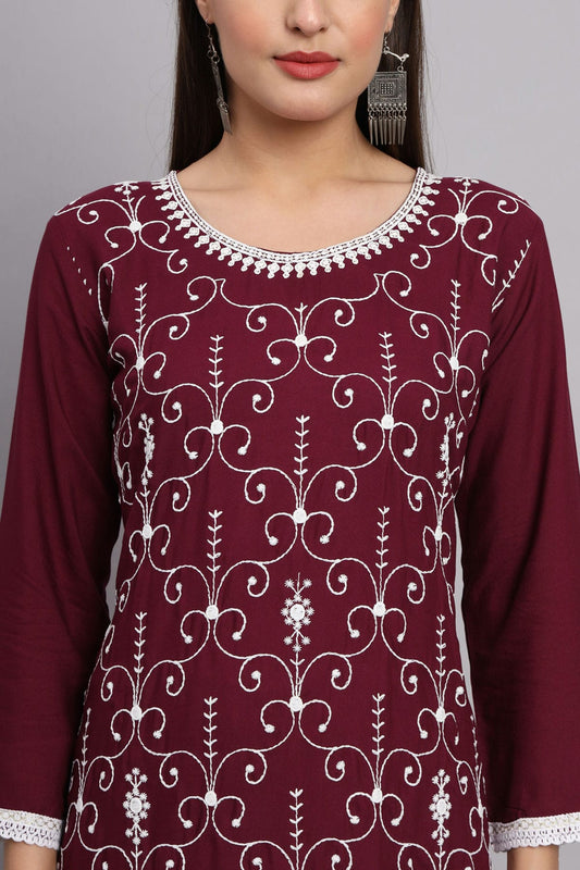 Maroon Colour Rayon Kurti VSKR1111097