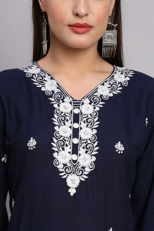Navy Blue Colour Rayon Kurti VSKR1111079