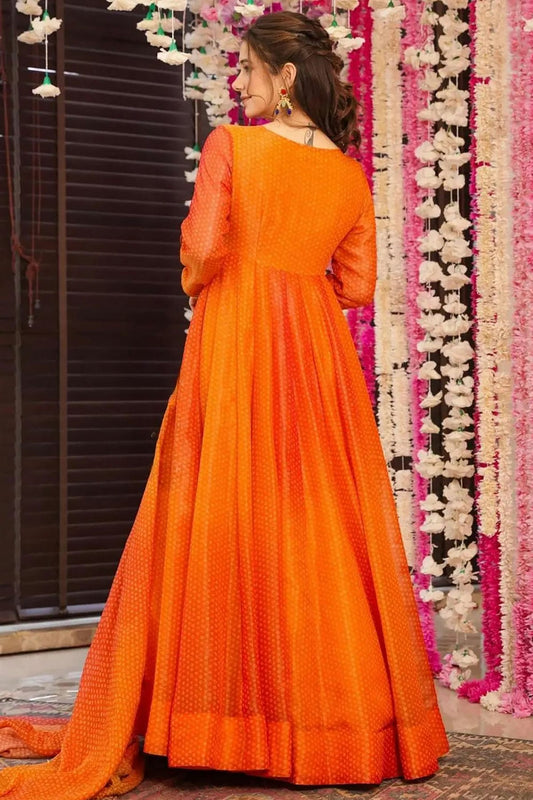 Orange Colour Chinon Stitched Gown VSGW1112312