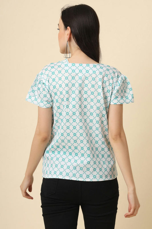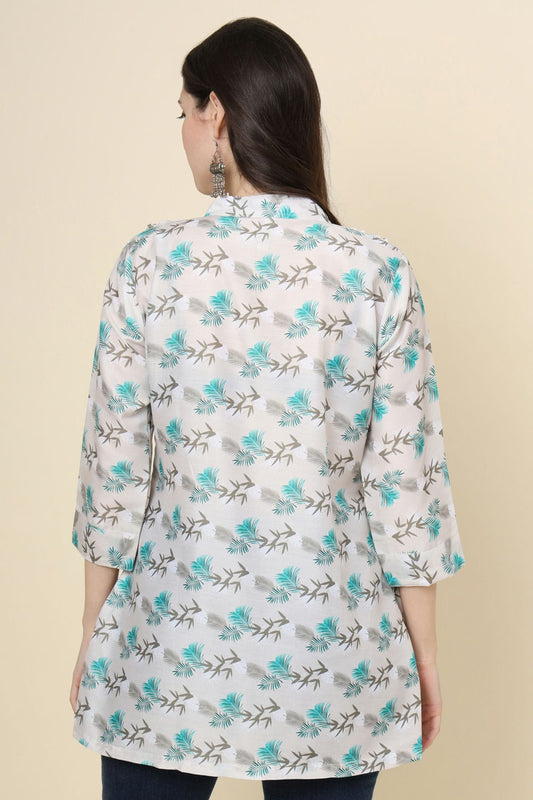 White Colour Cotton Printed Work Readymade Top VSTP1110790