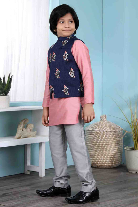 Pink and Blue Colour Cotton Silk Kurta Pajama With Jacket VSBW1070106
