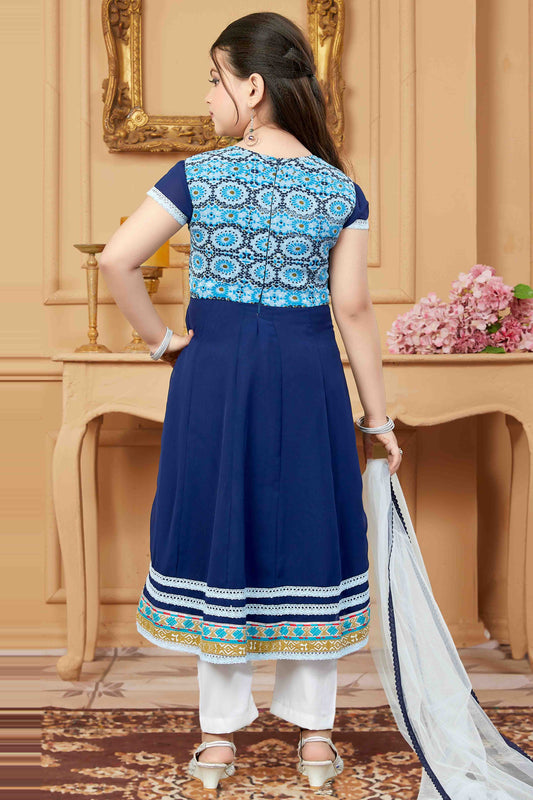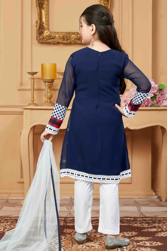 Navy Blue Colour Faux Georgette Pant Style Suit VSGW1070766