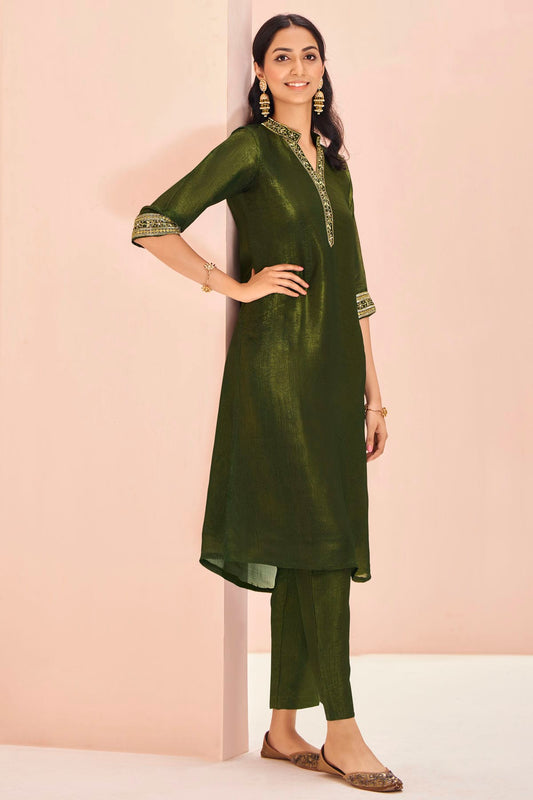 Mehendi Green Colour Cotton Blend Kurta And Pant Set VSKR1111327