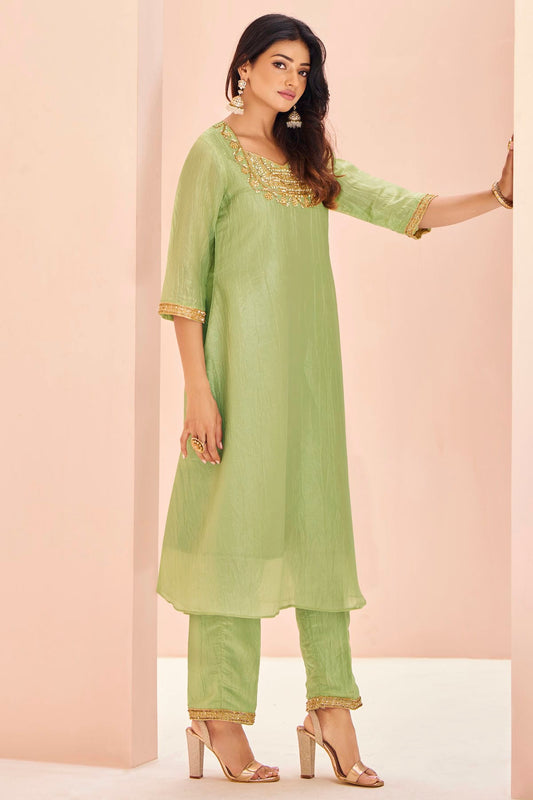 Pista Green Colour Organza Top and Bottom VSTP1080931