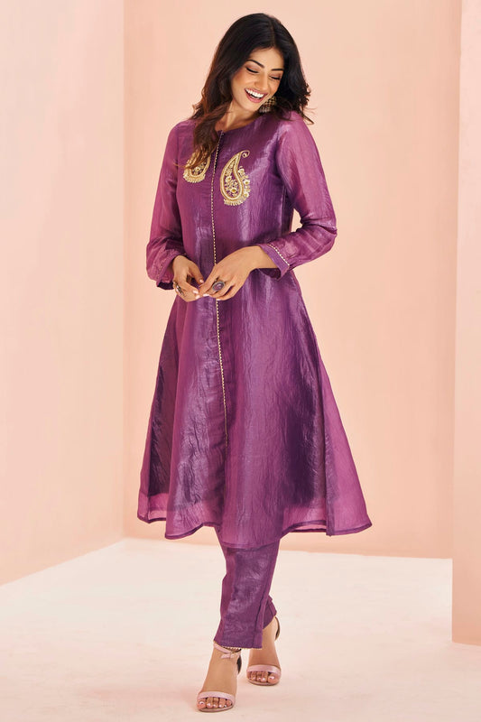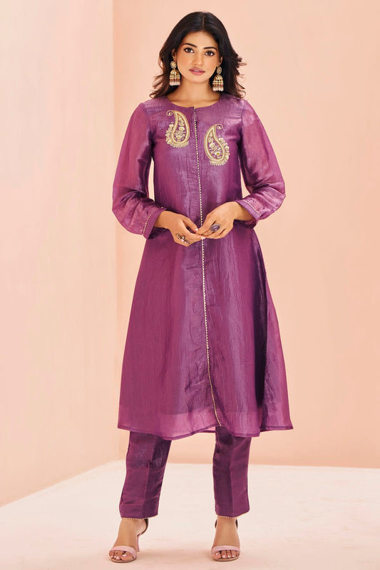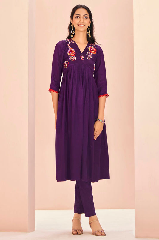Purple Colour Cotton Blend Kurta And Pant Set VSKR1111330