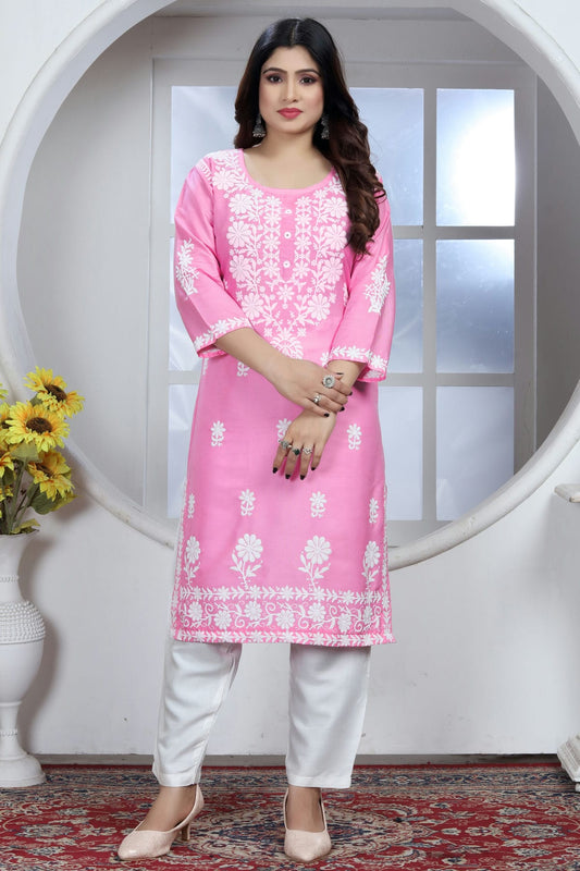 Baby Pink Colour Rayon Kurta And Pant Set VSKR1111337