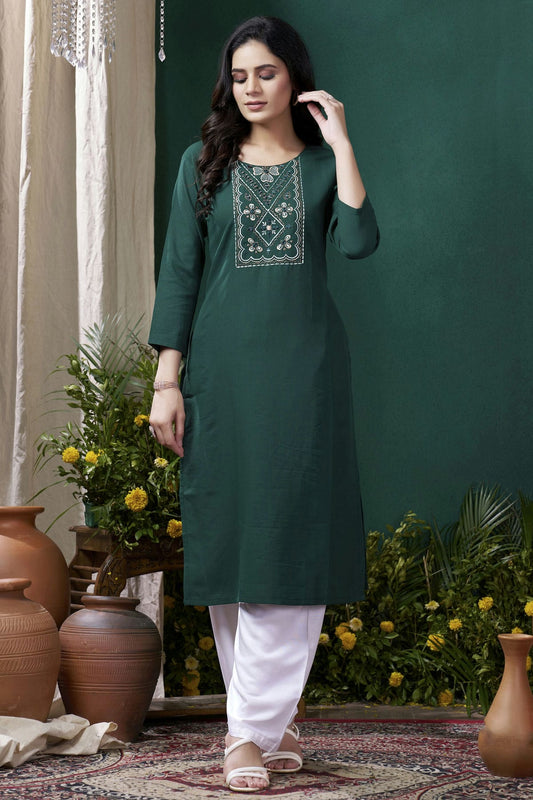 Teal Colour Rayon Kurta And Pant Set VSKR1111336
