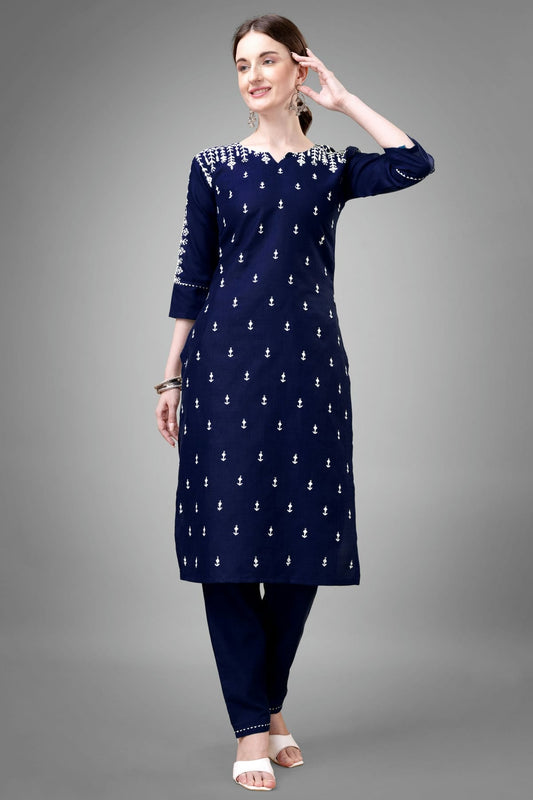 Navy Blue Colour Cotton Blend Kurta And Pant Set VSKR1111329