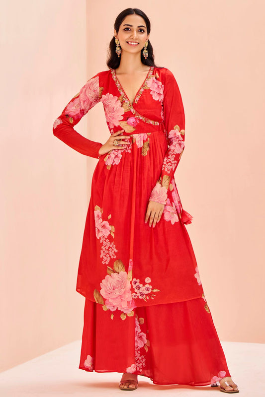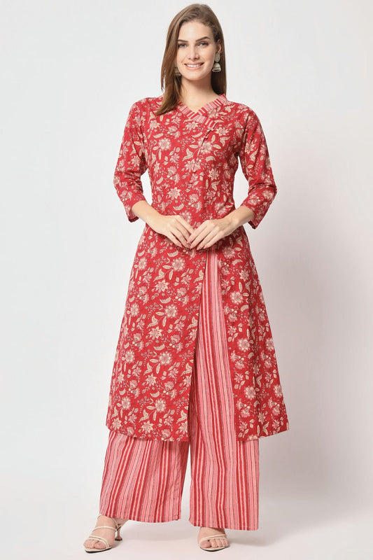 Red Colour Stitched Cotton Top and Bottom VSTP1112377