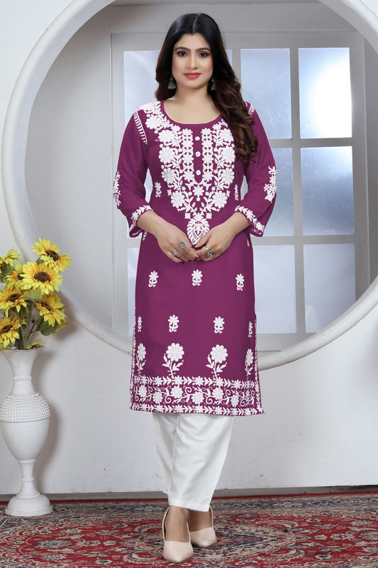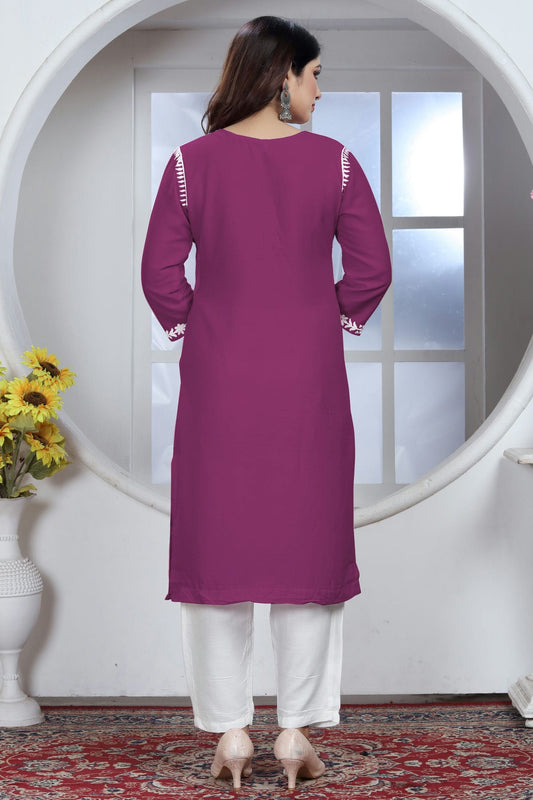 Wine Colour Rayon Kurta And Pant Set VSKR1111338
