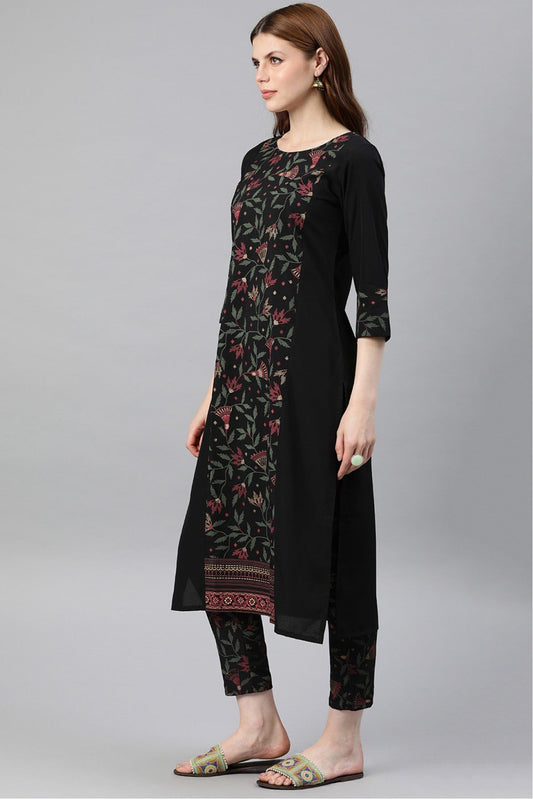 Black Colour Plus Size Rayon Foil Print Kurti With Pant Set VSKR1060074