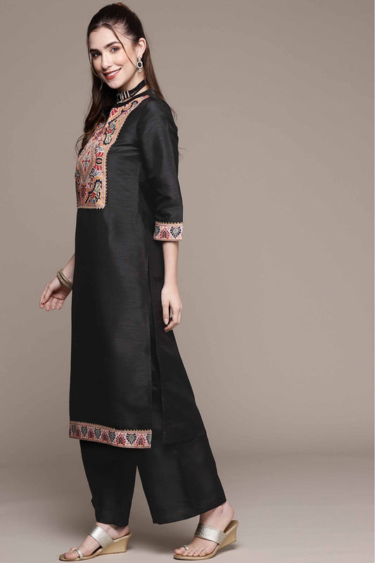 Black Colour Plus Size Crepe Kurta Set VSKR1060129