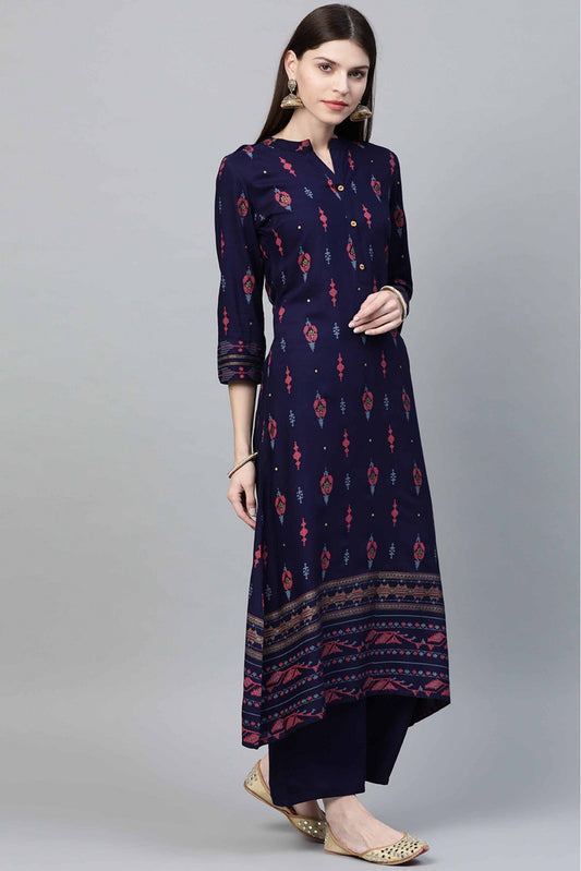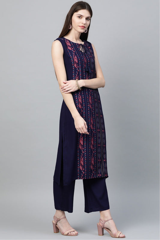 Navy Blue Colour Rayon Foil Print Kurta With Palazzo VSKR1060030