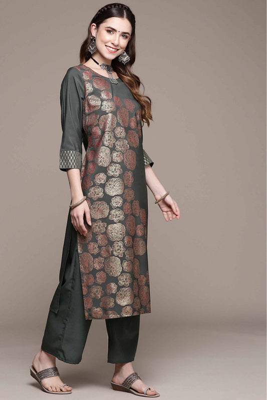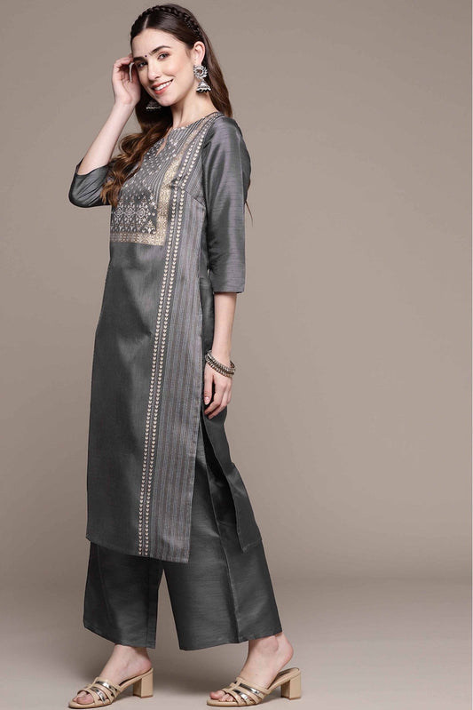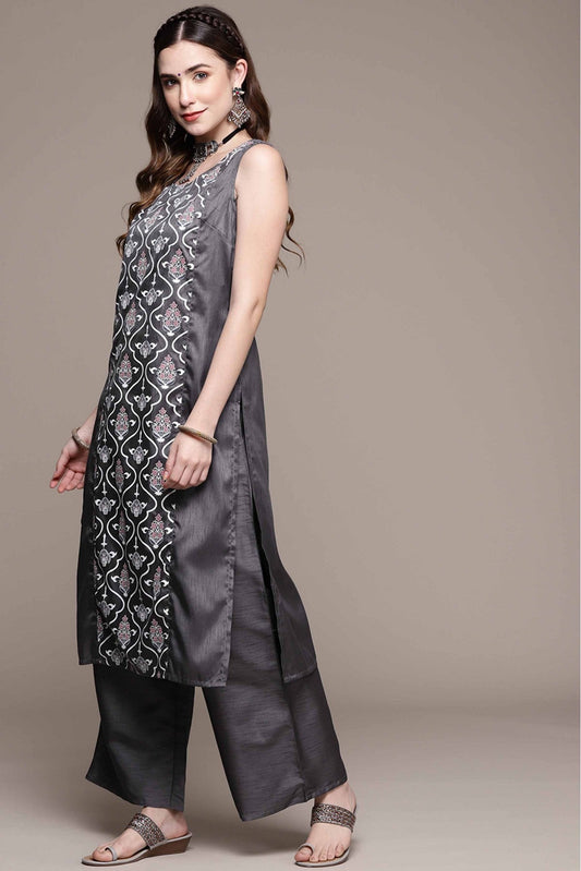 Dark Grey Colour Poly Silk Printed Kurta With Palazzo VSKR1060024