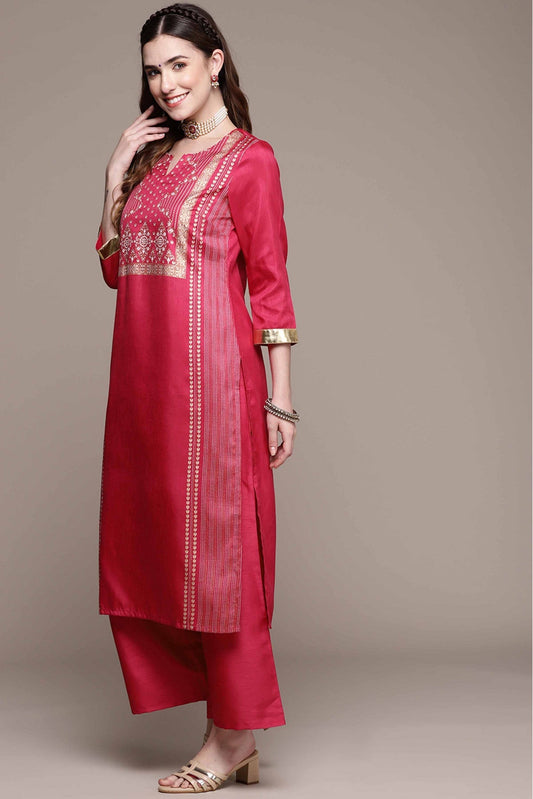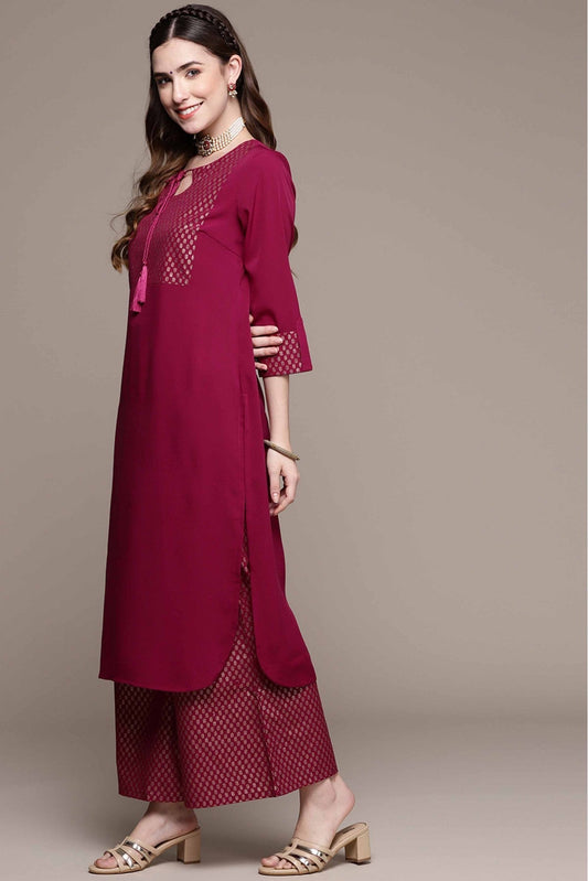 Dark Pink Colour Crepe Foil Print Kurta With Palazzo VSKR1060022