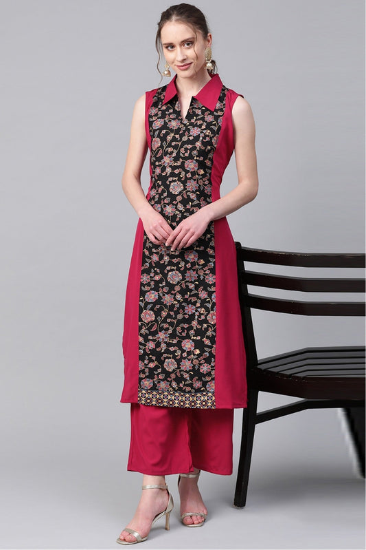 Black and Pink Colour Plus Size Crepe Straight Kurta Palazzo Set VSKR1060011