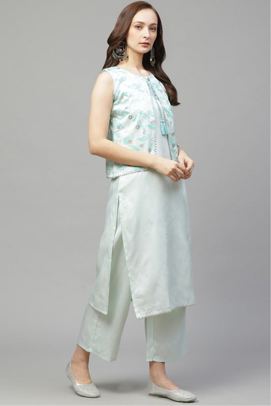 Mint Green Colour Plus Size Poly Silk Straight Kurta Palazzo Set VSKR1060016