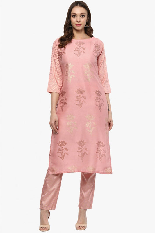 Pink Colour Poly Silk Foil Print Kurta Set With Dupatta VSKR1060321
