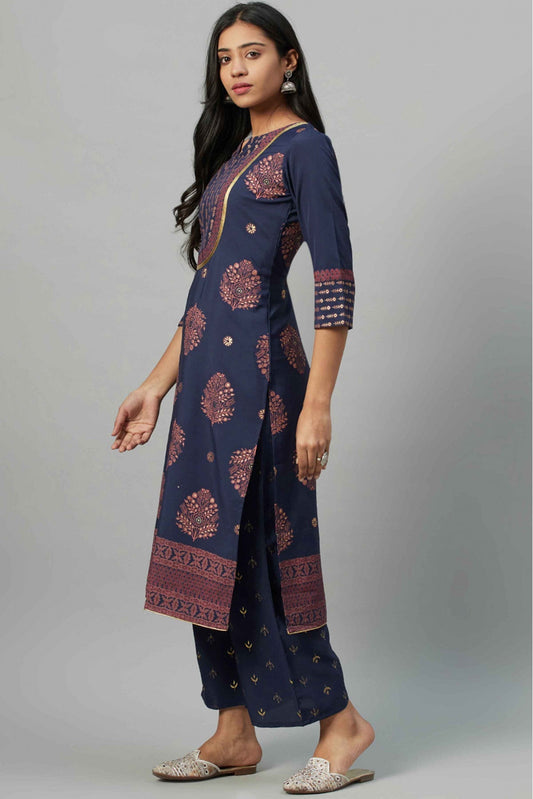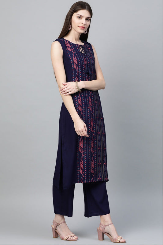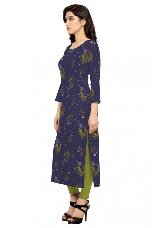 Navy Blue Colour Plus Size Rayon Straight Kurti VSKR1060223