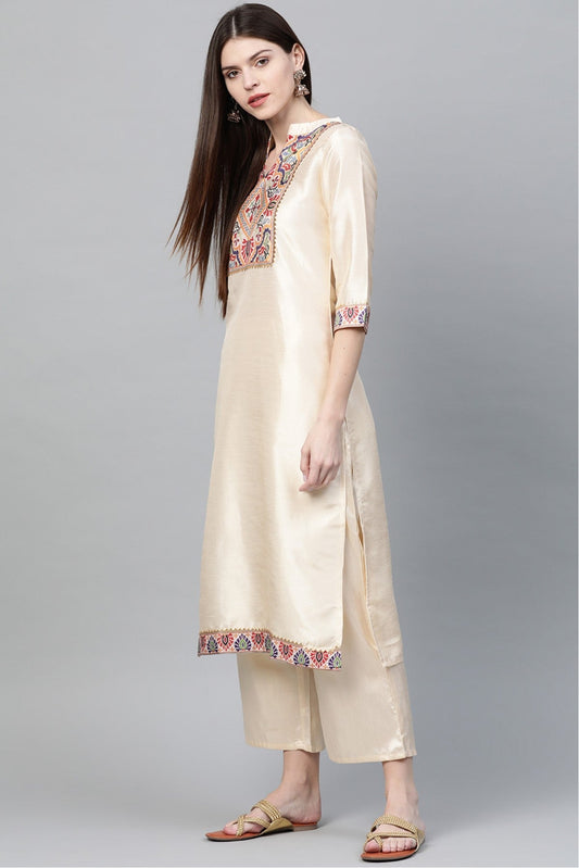 Cream Colour Plus Size Poly Silk Straight Kurti VSKR1060221