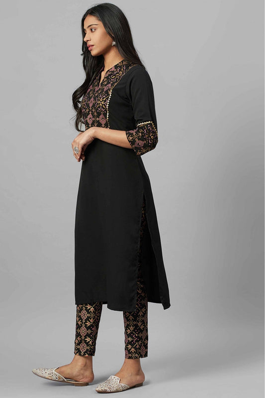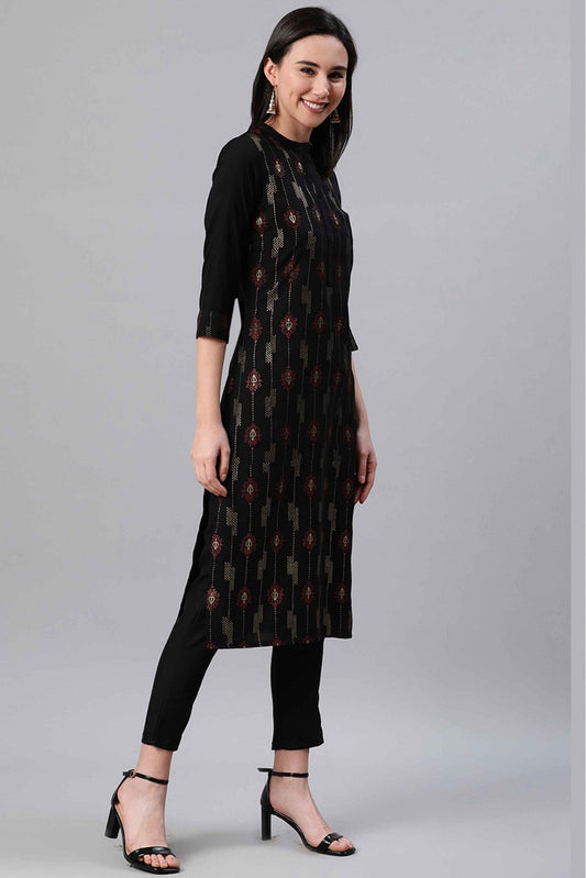 Black Colour Rayon Foil Print Kurti VSKR1060273