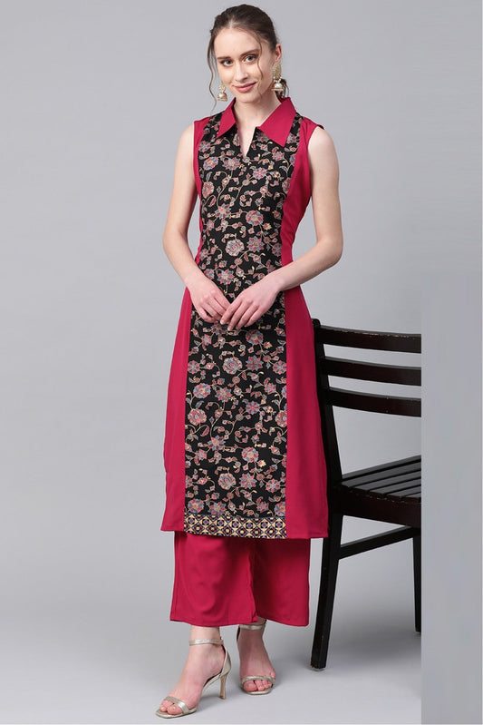Black and Pink Colour Plus Size Crepe Straight Kurti VSKR1060214