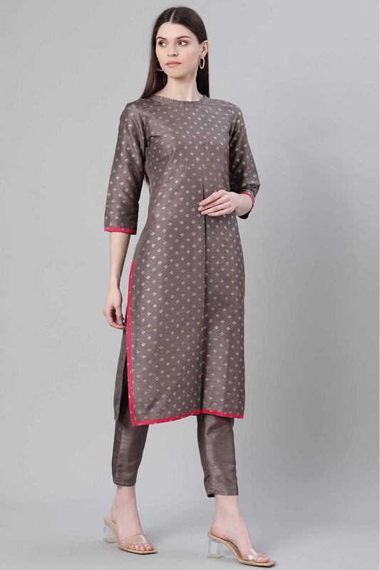 Grey Colour Poly Silk Foil Print Kurti VSKR1060258