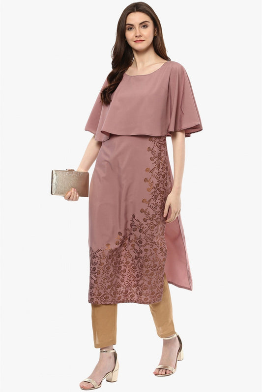 Peach Colour Crepe Foil Print Kurti VSKR1060234