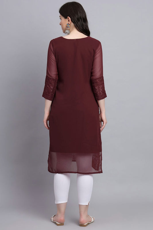 Wine Colour Georgette Kurti VSKR1111185