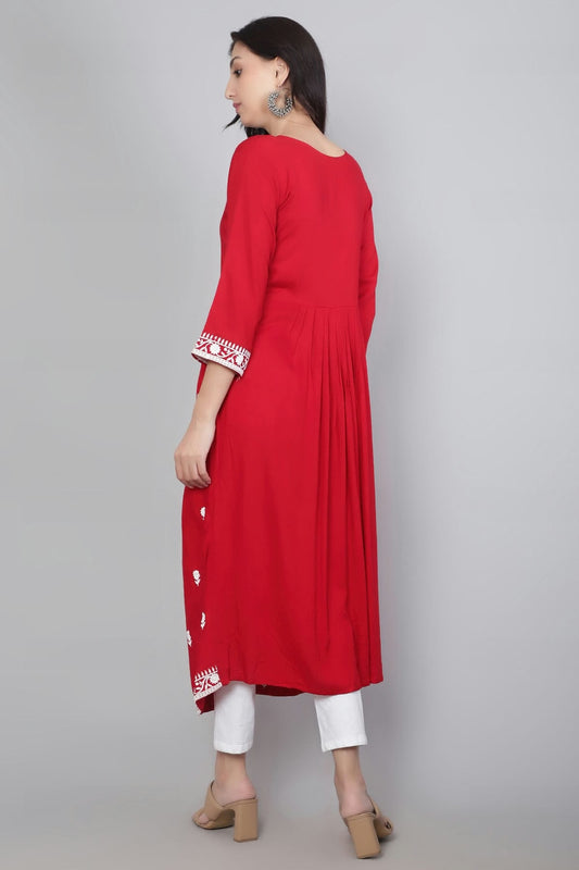 Red Colour Rayon Kurti VSKR1111136