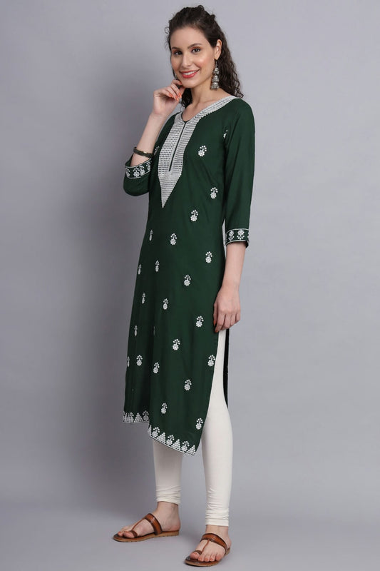 Green Colour Rayon Kurti VSKR1111137