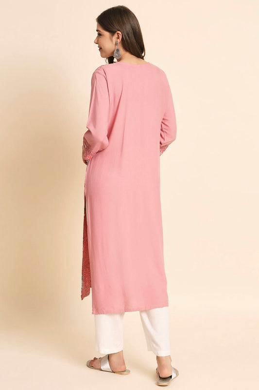 Baby Pink Colour Rayon Kurti VSKR1111116