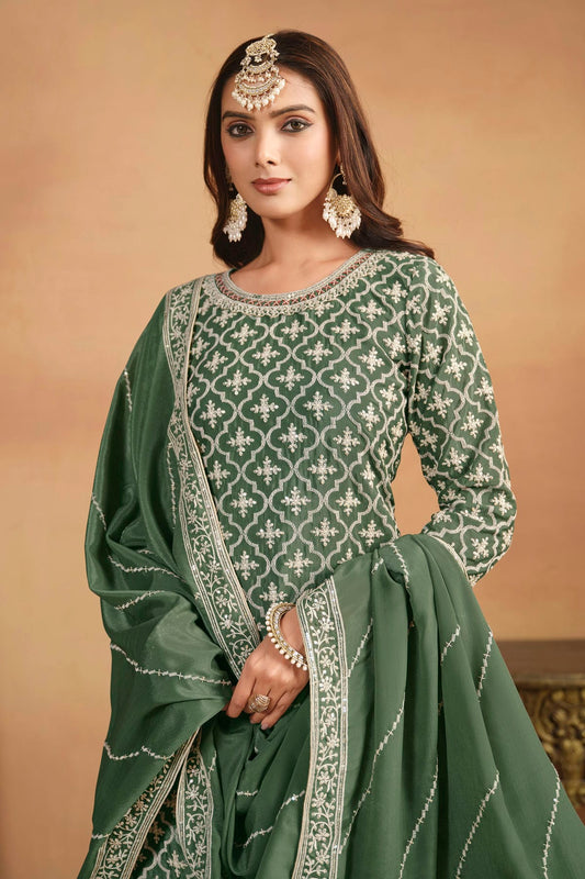 Light Green Colour Lehenga Suit Chinon Semi Stitched VSSM1050509
