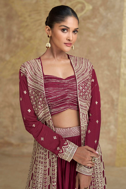 Magenta Colour Chinon Silk Semi Stitched Lehenga Suit VSSM1140461