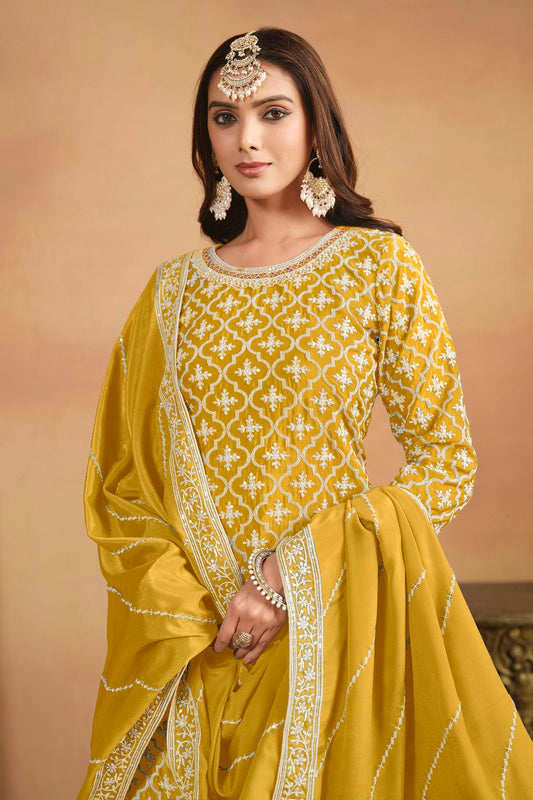 Yellow Colour Chinon Stitched Lehenga Suit VSSS1140933