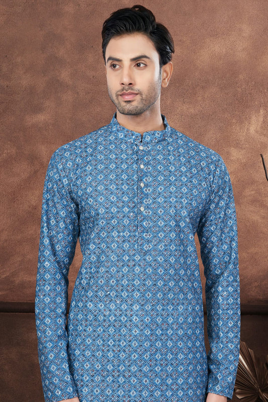 Blue Colour Soft Rayon Kurta Pajama VSKP1040683
