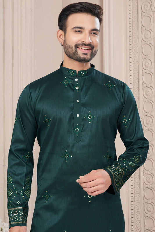 Green Colour Jacquard Kurta Pajama VSKP1040679
