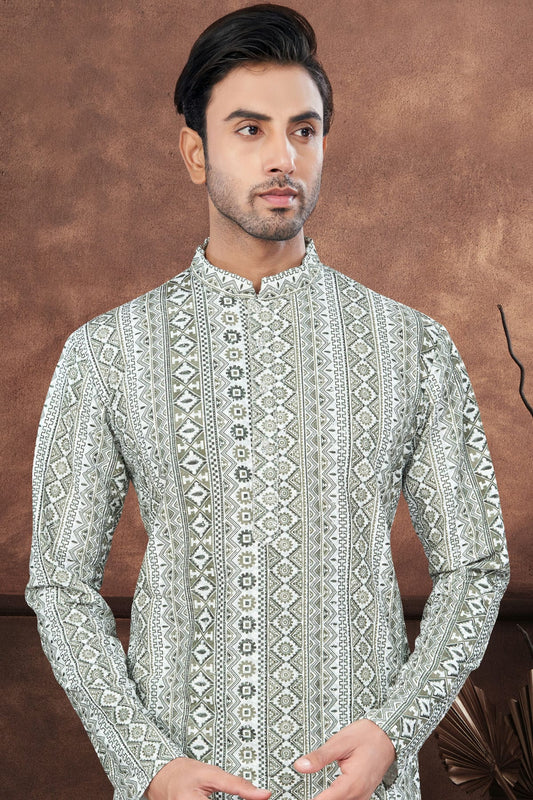 Mehendi Green Colour Jacquard Kurta Pajama VSKP1040690