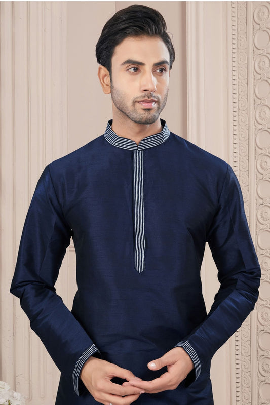 Navy Blue Colour Art Silk Kurta Pajama VSKP1040702
