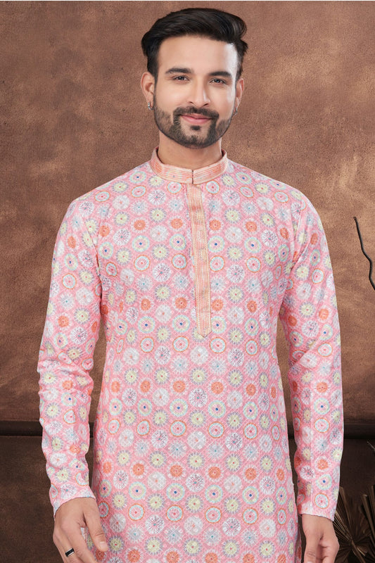 Baby Pink Colour Soft Rayon Kurta Pajama VSKP1040676