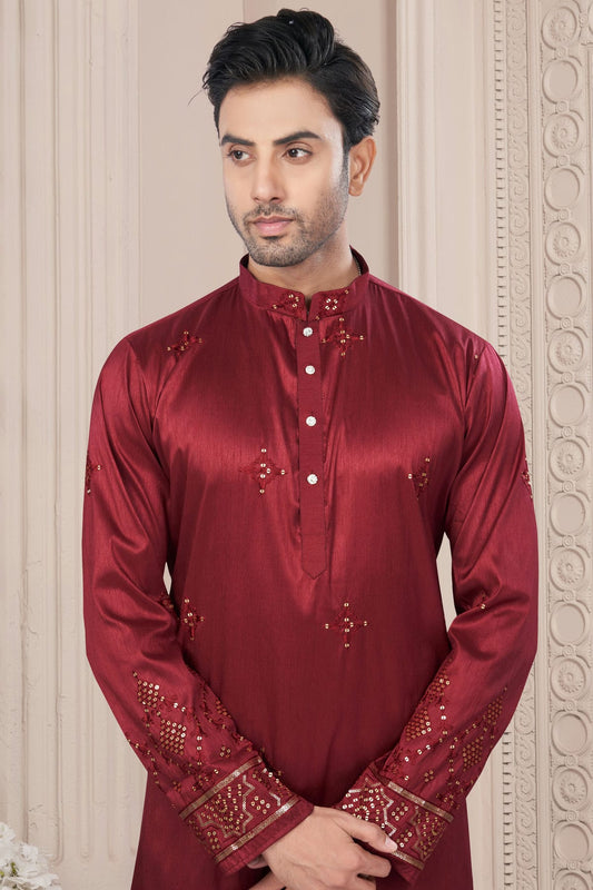 Maroon Colour Pure Silk Kurta Pajama VSKP1040698