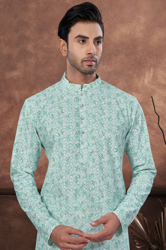 Light Teal Colour Jacquard Kurta Pajama VSKP1040675
