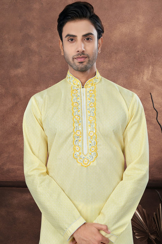 Yellow Colour Cotton Kurta Pajama VSKP1040693