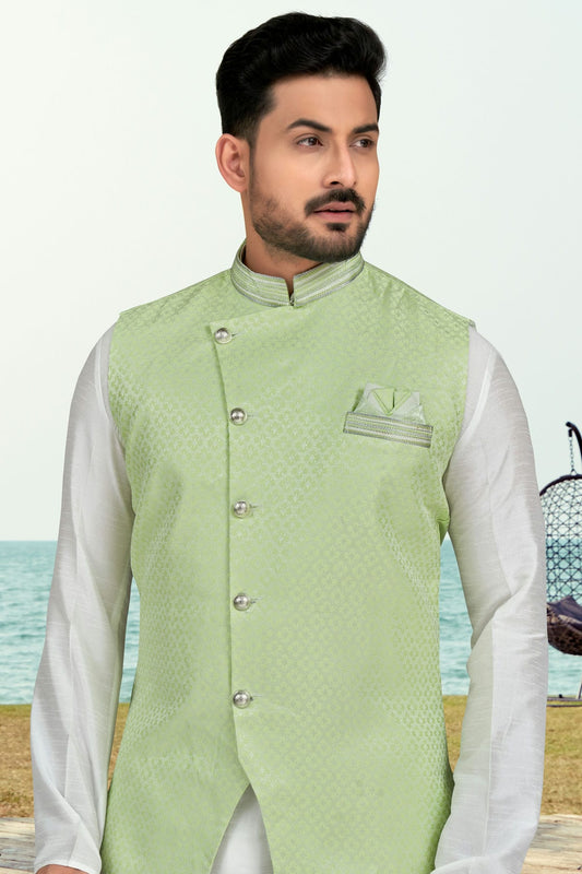 Green Colour Kurta Pajama In Jacquard Silk VSKP1210022