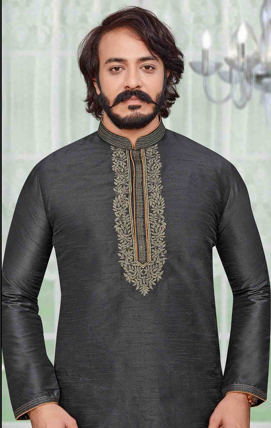 Black Colour Kurta Pajama In Art Silk VSKP1210085
