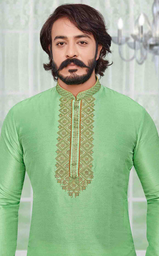 Light Green Colour Kurta Pajama In Art Silk VSKP1210087