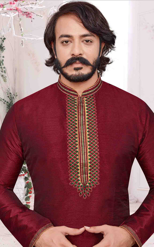 Maroon Colour Kurta Pajama In Art Silk VSKP1210086