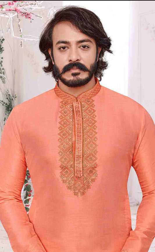 Peach Colour Kurta Pajama In Art Silk VSKP1210088