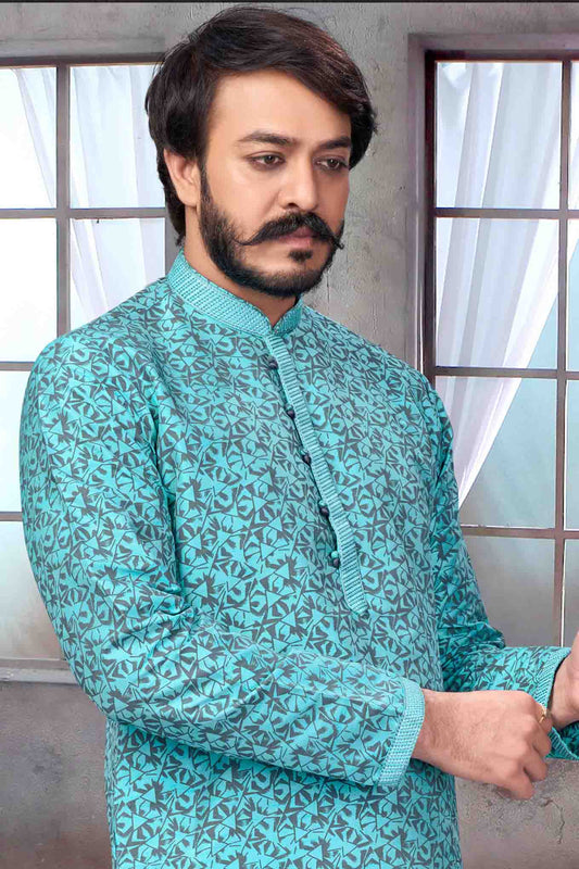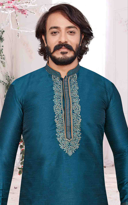 Teal Blue Colour Kurta Pajama In Art Silk VSKP1210091